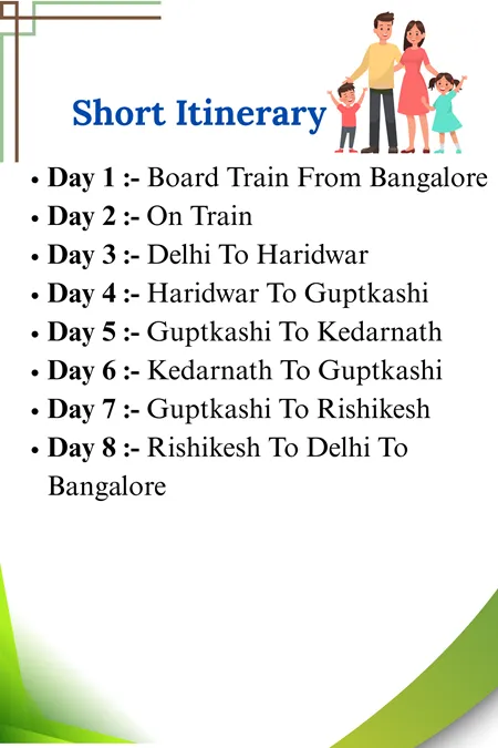 This trip is going to be for 8 days and 7 nights, during which we are going to cover the Kedarnath temple, the Dhari Devi temple, Rudraprayag, the Devprayag, the Gaurikund and many more.